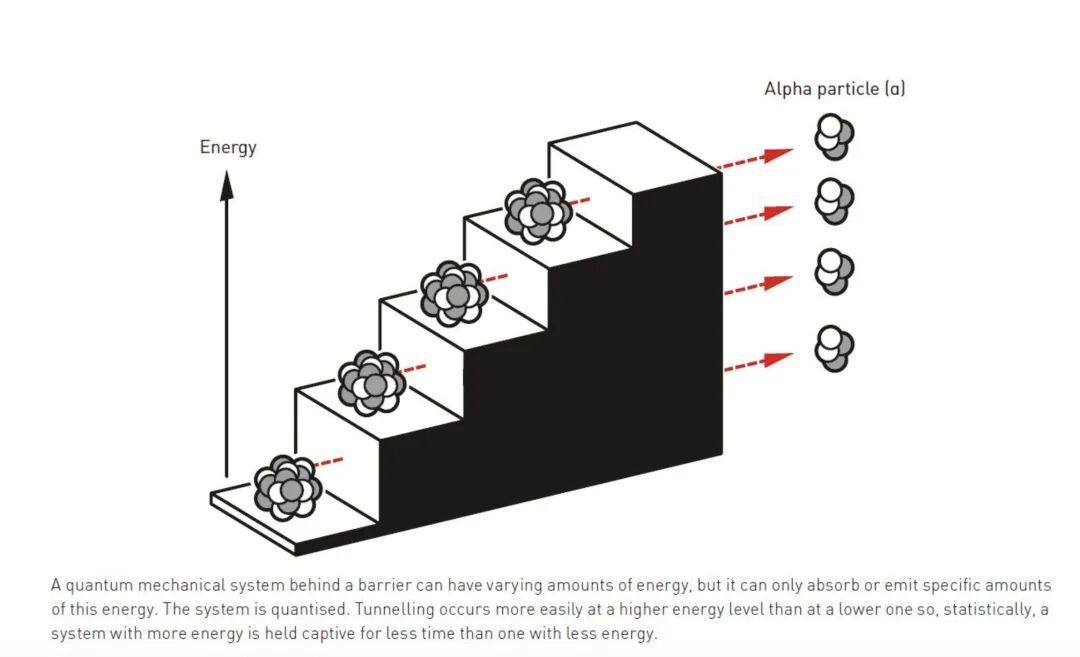 物理学家已经知道,隧道效应对于一种特定类型的核衰变(α衰变)来说是必需的。原子核中的一小部分会脱离原子核并出现在原子核的外面。这里强调了隧道效应在α衰变过程中的重要性,解释了α衰变过程中α粒子是如何从原子核内部穿越势垒(Barrier)而逃逸到原子核外部的现象。图源:Johan Jarnestad/The Royal Swedish Academy of Sciences